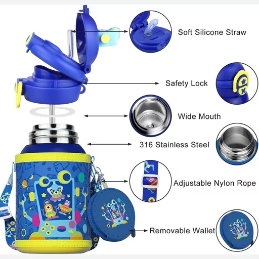قمقمه فلاسکی کودک دوحالته استیل دوجداره با گنجایش 550 میل