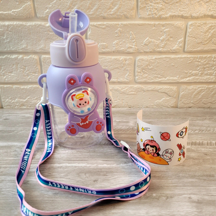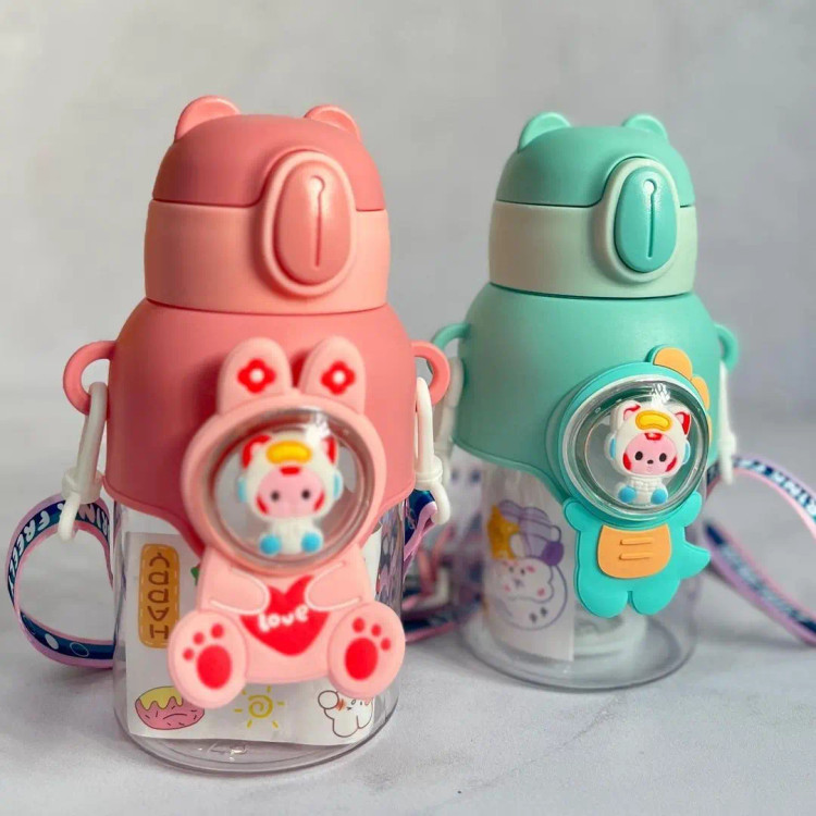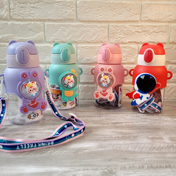 قمقمه فانتزی وارداتی کودک مدل فضانورد کوچک به همراه بند رودوشی و نی با گنجایش 550 میل