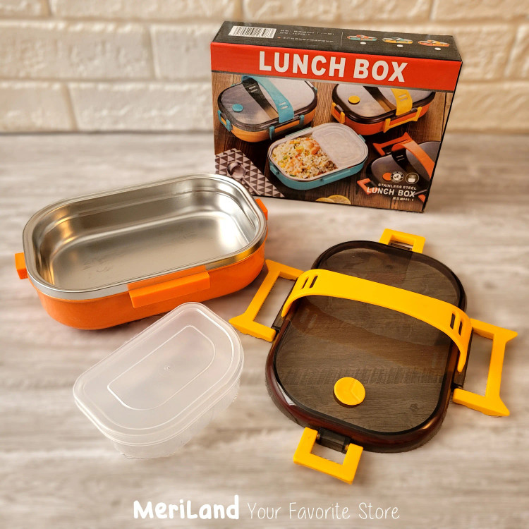 ظرف غذا Lunch Box یک طبقه استیل ضد زنگ با بدنه پلاستیکی درجه 1 مناسب برای کودک و بزرگسال